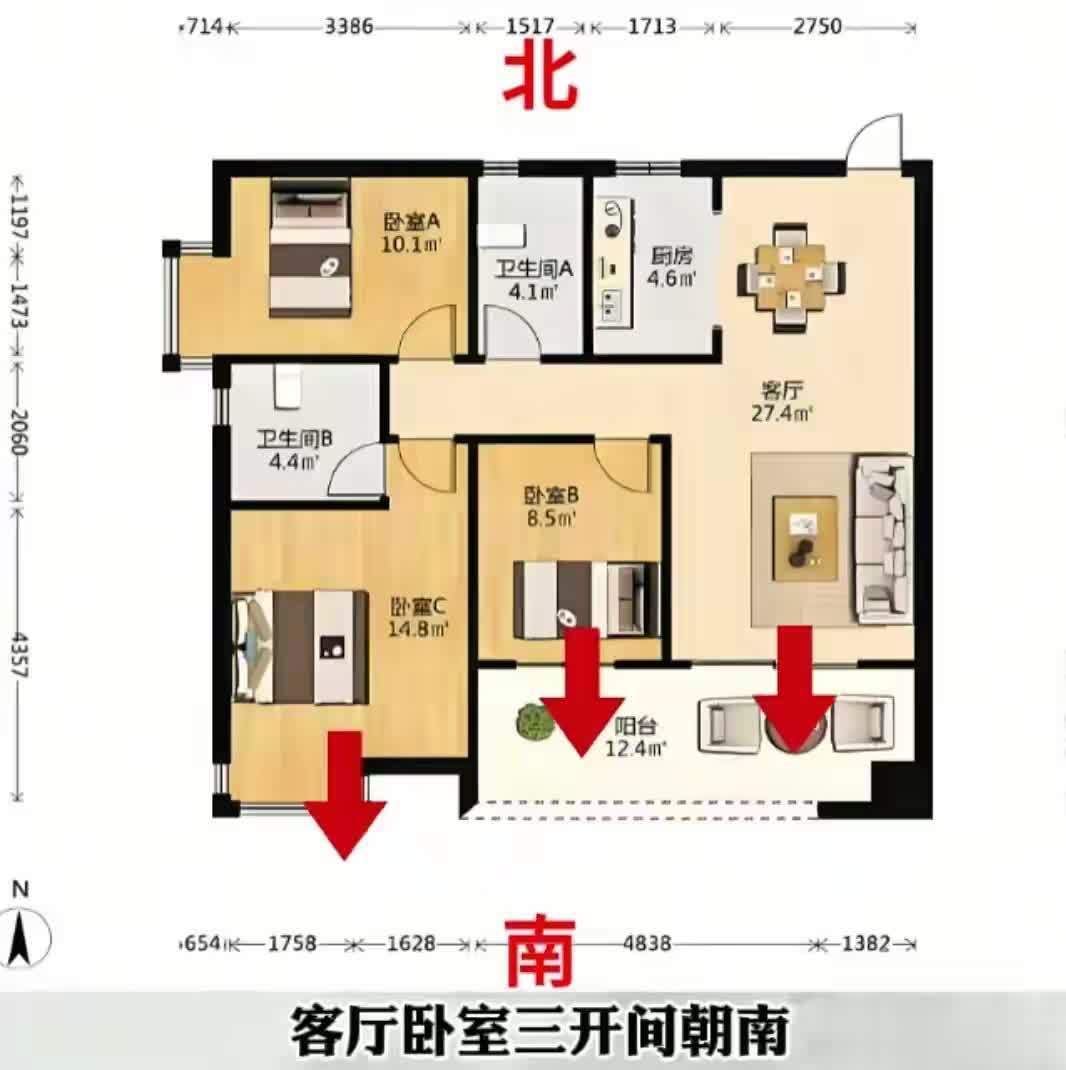 总结:家人们买房是大事,户型选对每天回家都是享受。记住这3个标准:户型方正、多朝南、动静分区清晰。看房时对着这几点核对,选到“王炸”户型不踩坑!