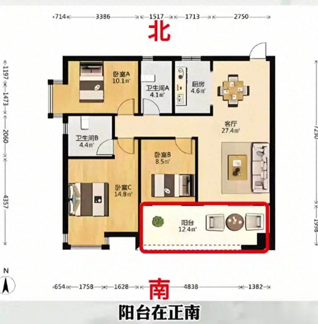 二、采光是核心,多朝南才住得舒服同事大刘去年买了套140平大户型,客厅朝北不见光,冬天屋里阴沉沉,养花养不活,全家抢一间朝南卧室晒太阳。